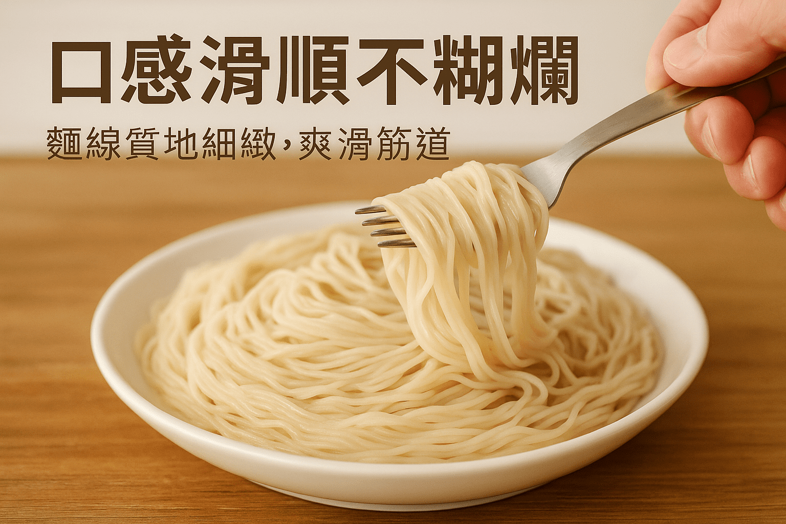 面條細緻柔韌,久煮不爛、不混湯,適合煮湯麵、拌麵、火鍋食材等多樣料理。 -